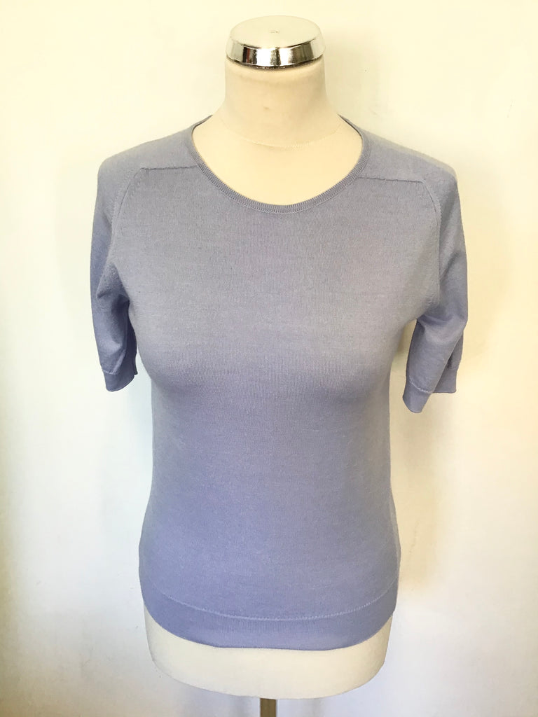 JAEGER PALE BLUE MERINO WOOL & SILK BLEND SHORT SLEEVE JUMPER SIZE S