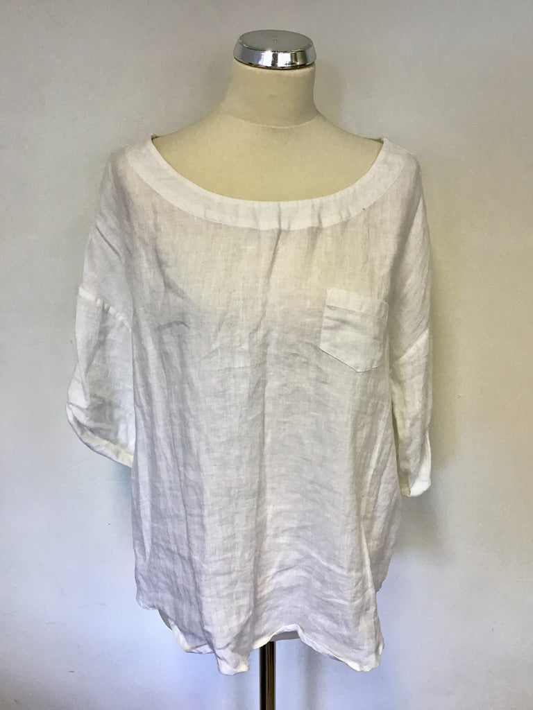 JAEGER WHITE LINEN SHORT SLEEVE TOP