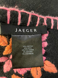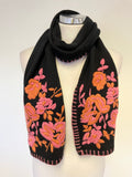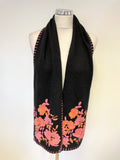 JAEGER WOOL,ANGORA & CASHMERE BLEND BLACK & PINK EMBROIDERED SCARF