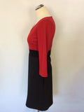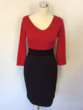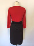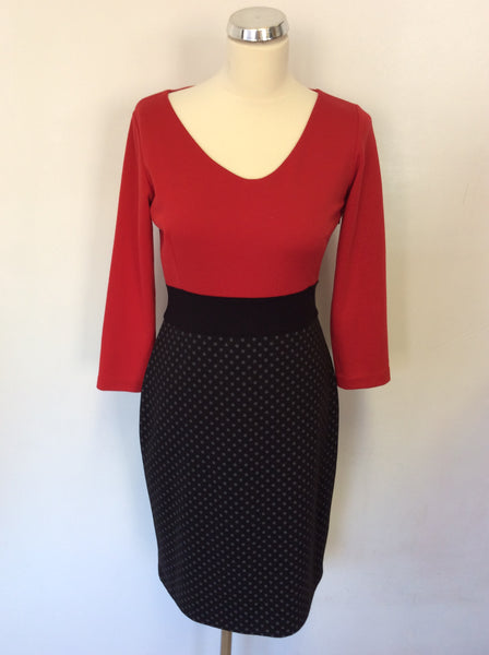 JAMES LAKELAND RED WITH BLACK & GREY SPOT SKIRT STRETCH PENCIL DRESS SIZE 10