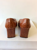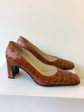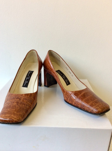 JANE SHILTON TAN LEATHER CROC PRINT HEELS SIZE 3.5/36
