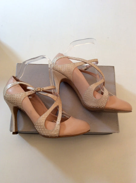 JENNE O PALE PINK & CREAM SNAKESKIN STRAPPY HEELS SIZE 4/37