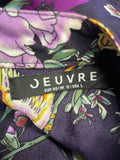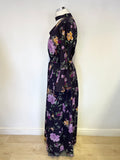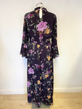 JEUVRE DARK PURPLE & MULTI COLOURED FLORAL PRINT LONG SLEEVED MAXI DRESS SIZE 12