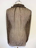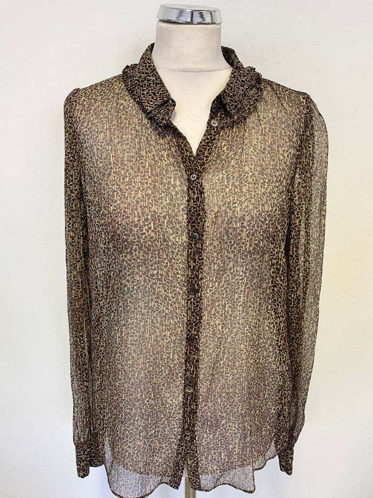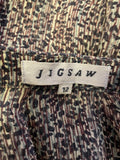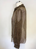 JIGSAW 100% SILK BROWN PRINT COLLARED LONG SLEEVED BLOUSE SIZE 12