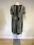 JIGSAW BLACK,GREEN & GREY PRINT SILK SHORT SLEEVE DRESS SIZE 16