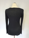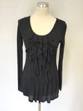 JIGSAW BLACK TIERED FRILL FRONT SCOOP NECK LONG SLEEVE TOP SIZE S