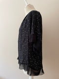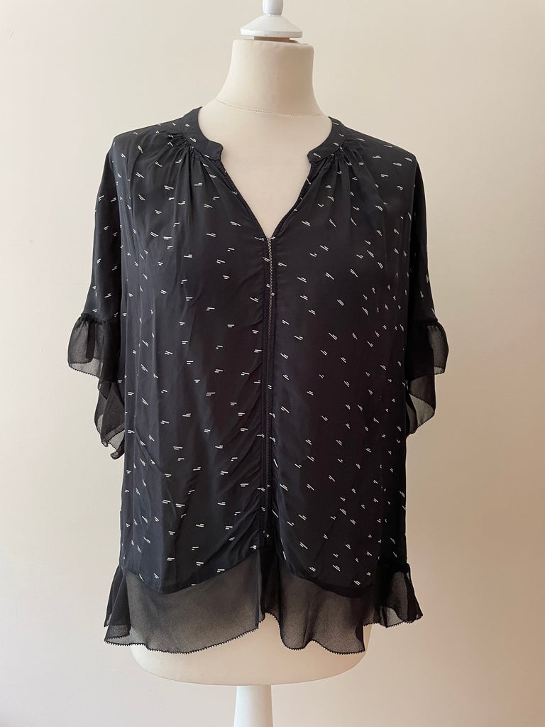 JIGSAW BLACK & WHITE PRINT SILK FLOATY SHORT SLEEVE TOP SIZE 12