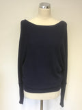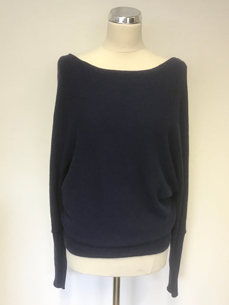 JIGSAW BLUE WOOL BLEND WIDE BOAT NECKLINE BATWING SLEEVE JUMPER SIZE XS