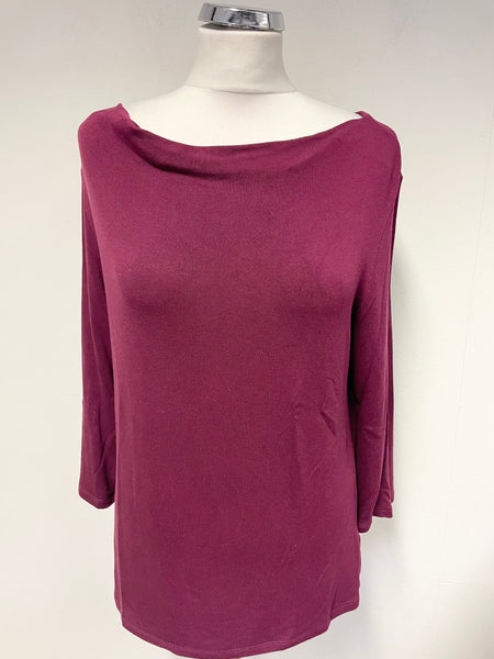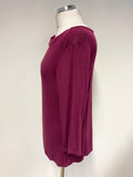 JIGSAW CRANBERRY STRETCH FINE KNIT 3/4 SLEEVE TOP SIZE L