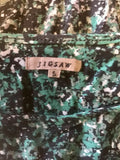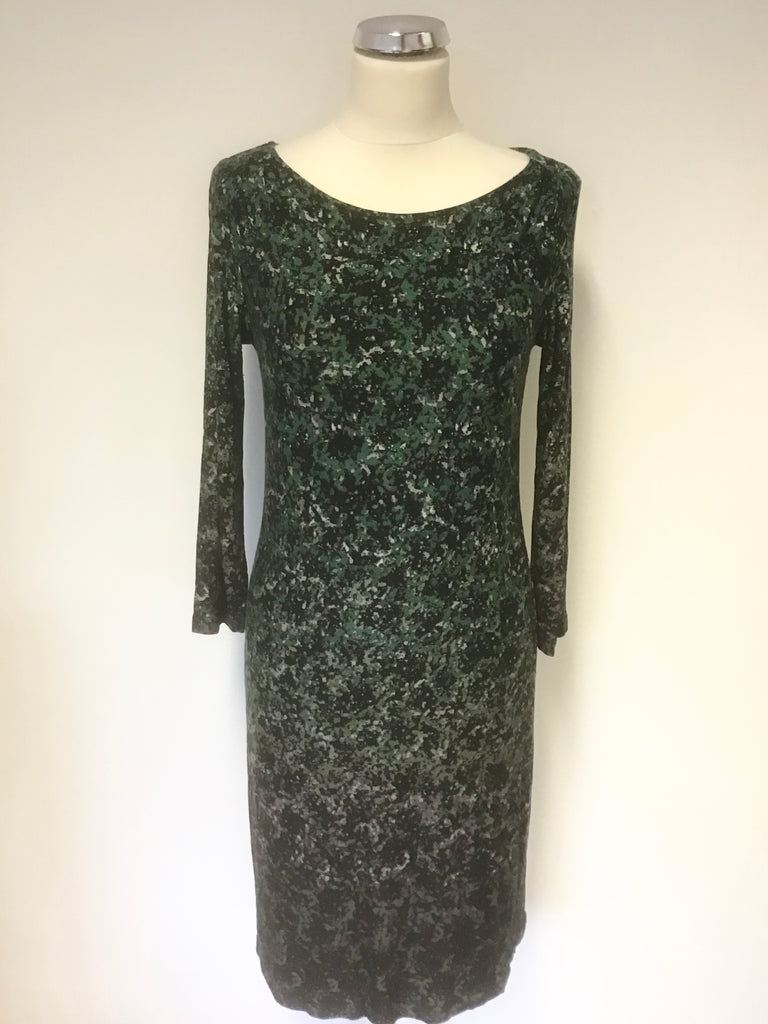 JIGSAW GREEN,BLACK & GREY PRINT STRETCH JERSEY 3/4 SLEEVE DRESS SIZE S