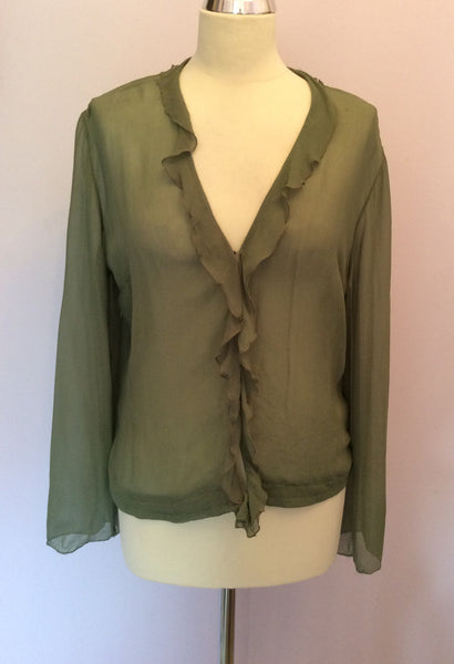 Jigsaw Green Silk V Neckline Frill Trim Blouse Size 12