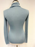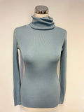 JIGSAW LIGHT BLUE SILK & COTTON FINE KNIT POLO NECK JUMPER SIZE S