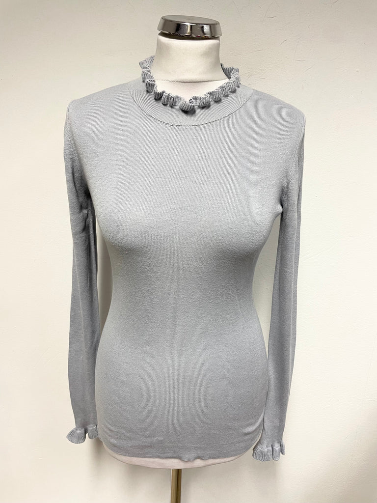 JIGSAW LIGHT GREY HIGH NECK LONG SLEEVED FRILL TRIMMED JUMPER