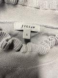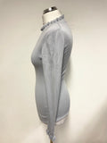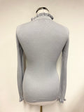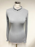 JIGSAW LIGHT GREY SILK & COTTON HIGH NECK LONG SLEEVED FRILL TRIMMED JUMPER SIZE S