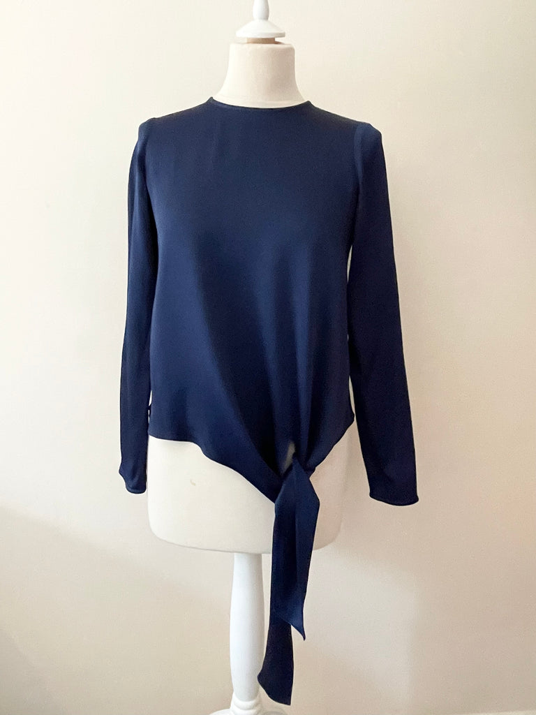 JIGSAW MIDNIGHT BLUE SATEEN LONG SLEEVE TIE TRIM TOP SIZE 8