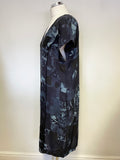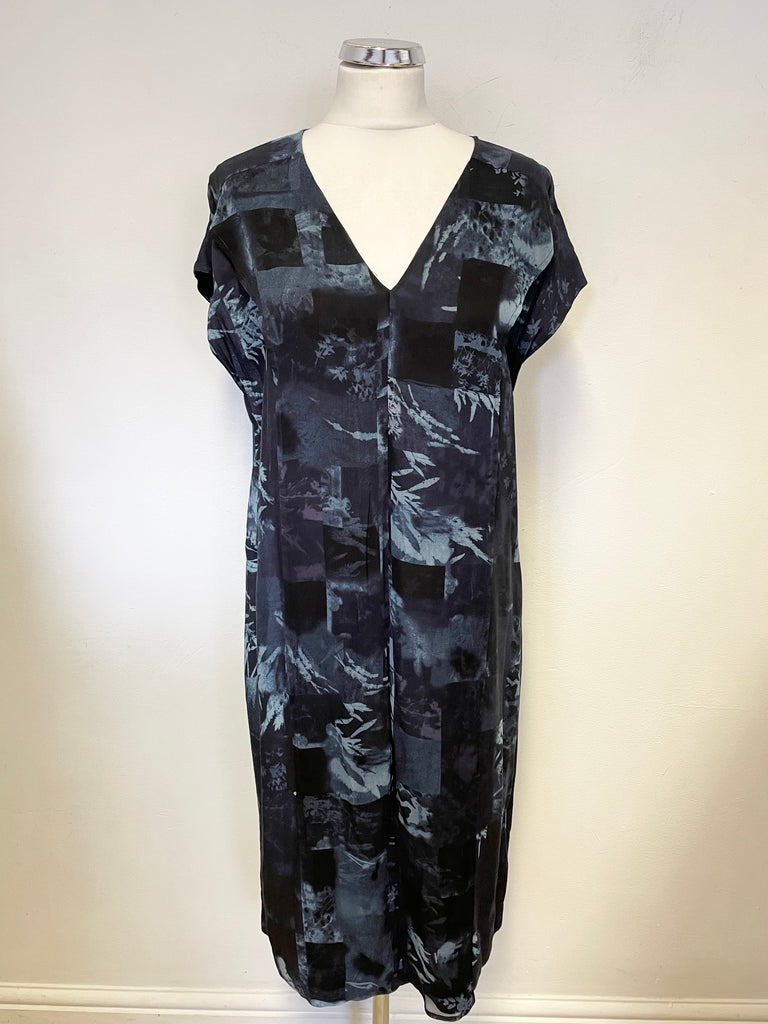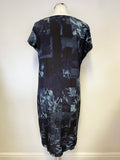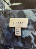 JIGSAW NAVY ABSTRACT PRINT WITH SILK OVERLAY PANEL SHIFT DRESS SIZE 12