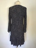JIGSAW NAVY BLUE & WHITE SPOT LONG SLEEVE DRESS SIZE 12