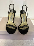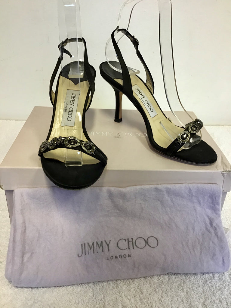 JIMMY CHOO BLACK SILK SATIN JEWEL TRIM SLINGBACK SANDALS SIZE 3.5/36