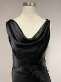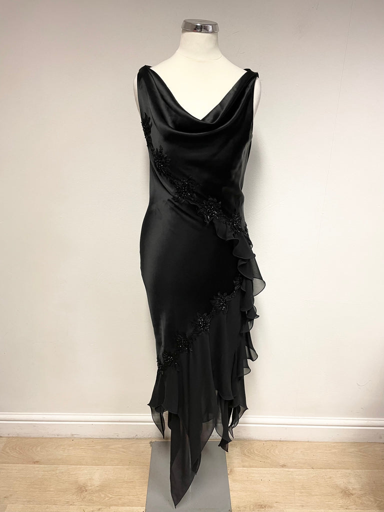 John Charles Black Satin Beaded & Sequin Evening Dress Size 8