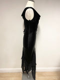 John Charles Black Beaded & Sequinned Long Evening Cocktail Dress