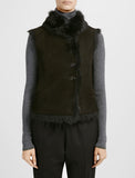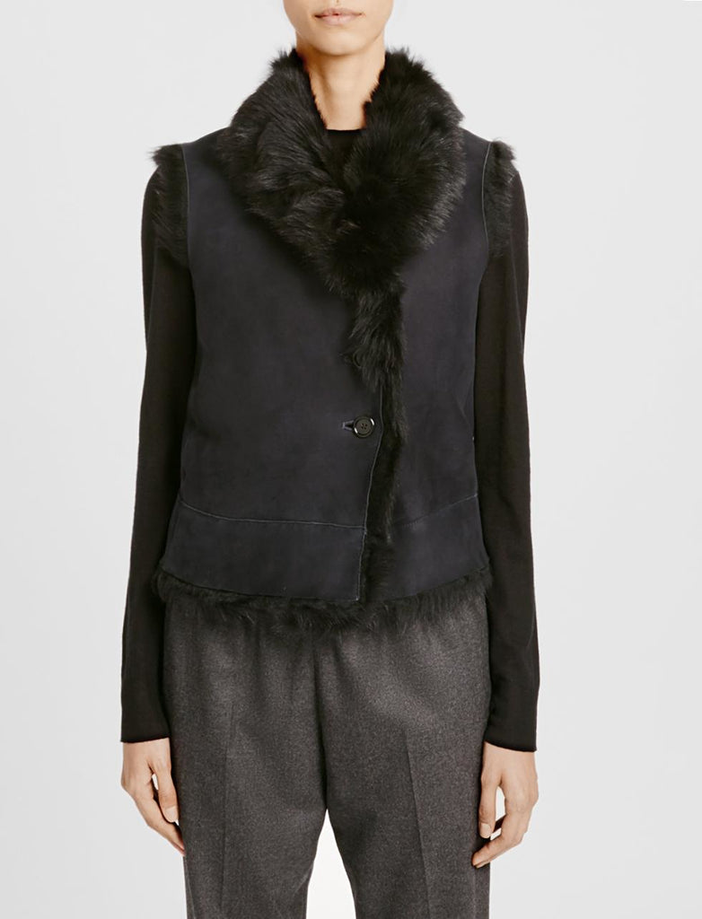 A BOHO INSPIRED GILET IN MATT SUEDE LAMBSKIN PANELS WITH LUSH PELT INTERIOR AND COLLAR