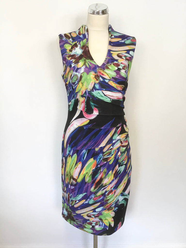 JOSEPH RIBCOFF MULTI COLOURED PRINT SLEEVELESS PENCIL DRESS SIZE 14