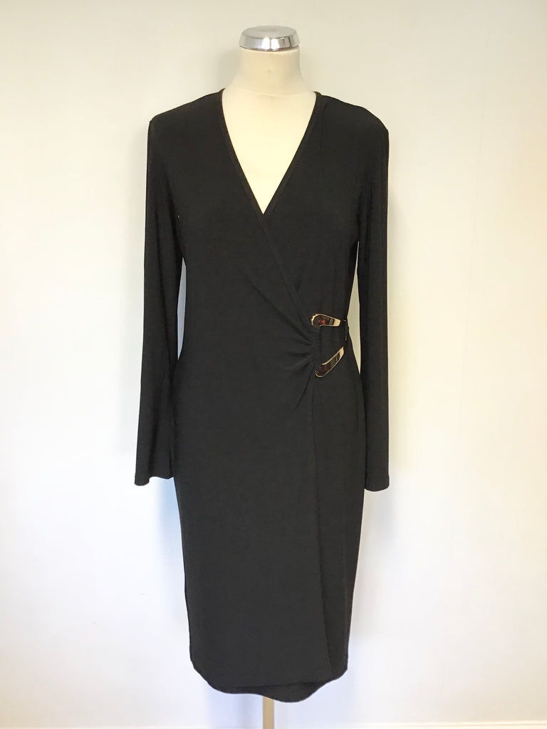 JOSEPH RIBKOFF BLACK LONG SLEEVE WRAP DRESS SIZE 12