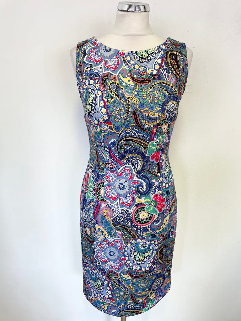 JOSEPH RIBKOFF MULTI COLOURED SLEEVELESS PENCIL DRESS SIZE 10