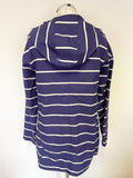 JOULES NAVY & WHITE STRIPED HOODED LONG SLEEVED JACKET SIZE 8