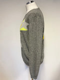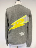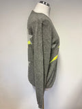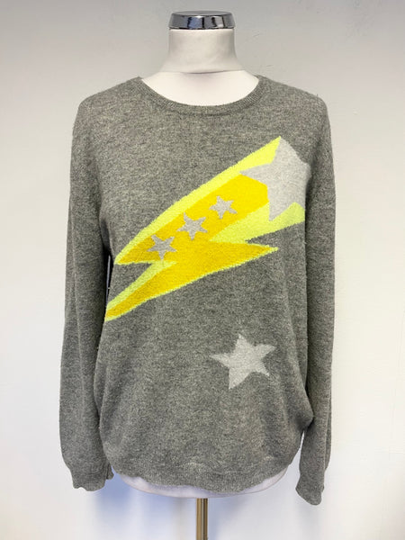 JUMPER 1234 GREY & YELLOW STAR DESIGN 100% CASHMERE LONG SLEEVE JUMPER SIZE L