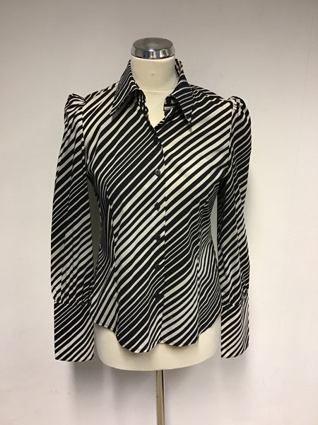KAREN MILLEN BLACK & CREAM STRIPE LONG SLEEVE DEEP CUFF SHIRT SIZE 12