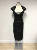 KAREN MILLEN BLACK DIAMANTÉ TRIM CORSET PENCIL DRESS SIZE 10