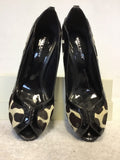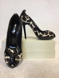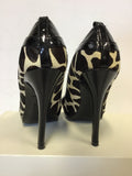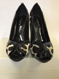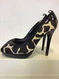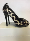 KAREN MILLEN BLACK & IVORY PONYSKIN PEEPTOE HEELS SIZE 5/38