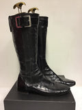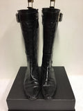 KAREN MILLEN BLACK PATENT LEATHER BUCKLE TRIM FLAT BOOTS SIZE 7/40