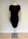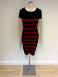KAREN MILLEN BLACK,RED & BEIGE STRETCH FINE KNIT DRESS SIZE 2 UK 8/10