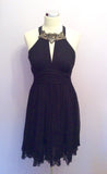 Karen Millen Black Silk Beaded & Jewel Trim Dress Size 10