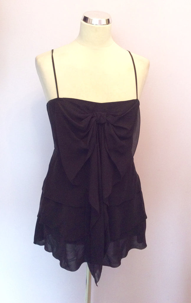 Karen Millen Black Silk Bow Trim Tiered Strappy Top Size 10