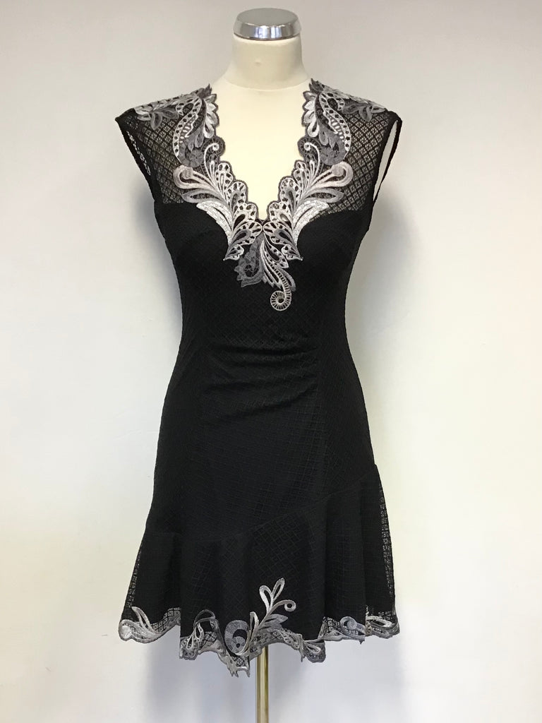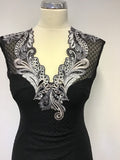 KAREN MILLEN BLACK & SILVER GREY EMBROIDERED SLEEVELESS SPECIAL OCCASION DRESS SIZE 10