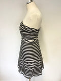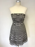 KAREN MILLEN BLACK & SILVER MESH OVERLAY STRAPLESS / STRAPPY FIT & FLARE SPECIAL OCCASION DRESS SIZE 10