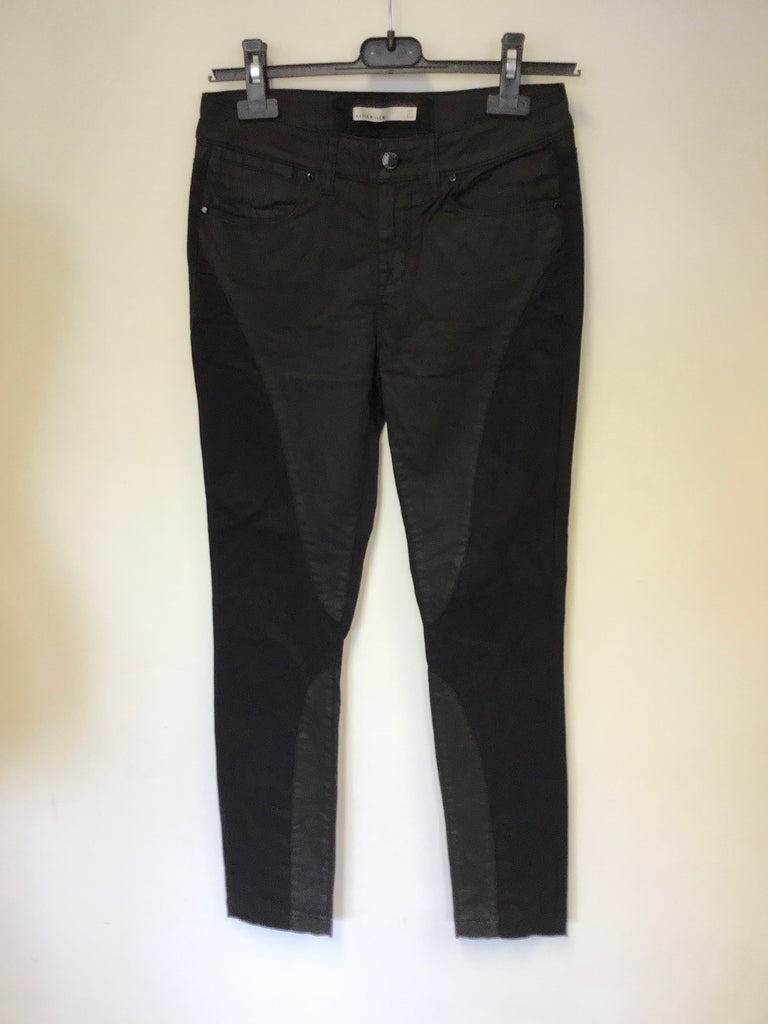 KAREN MILLEN BLACK SKINNY LEG CONTRAST WAX COTTON JEANS SIZE 8