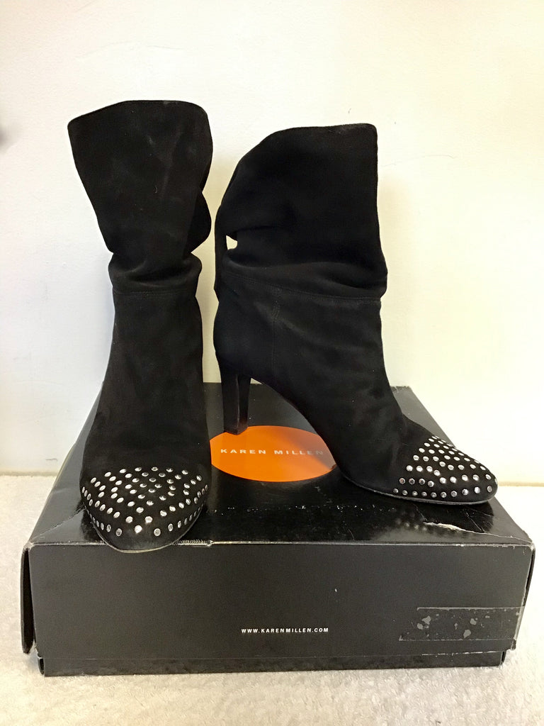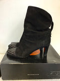 KAREN MILLEN BLACK SUEDE & SILVER STUD TRIM ANKLE BOOTS SIZE 6/39