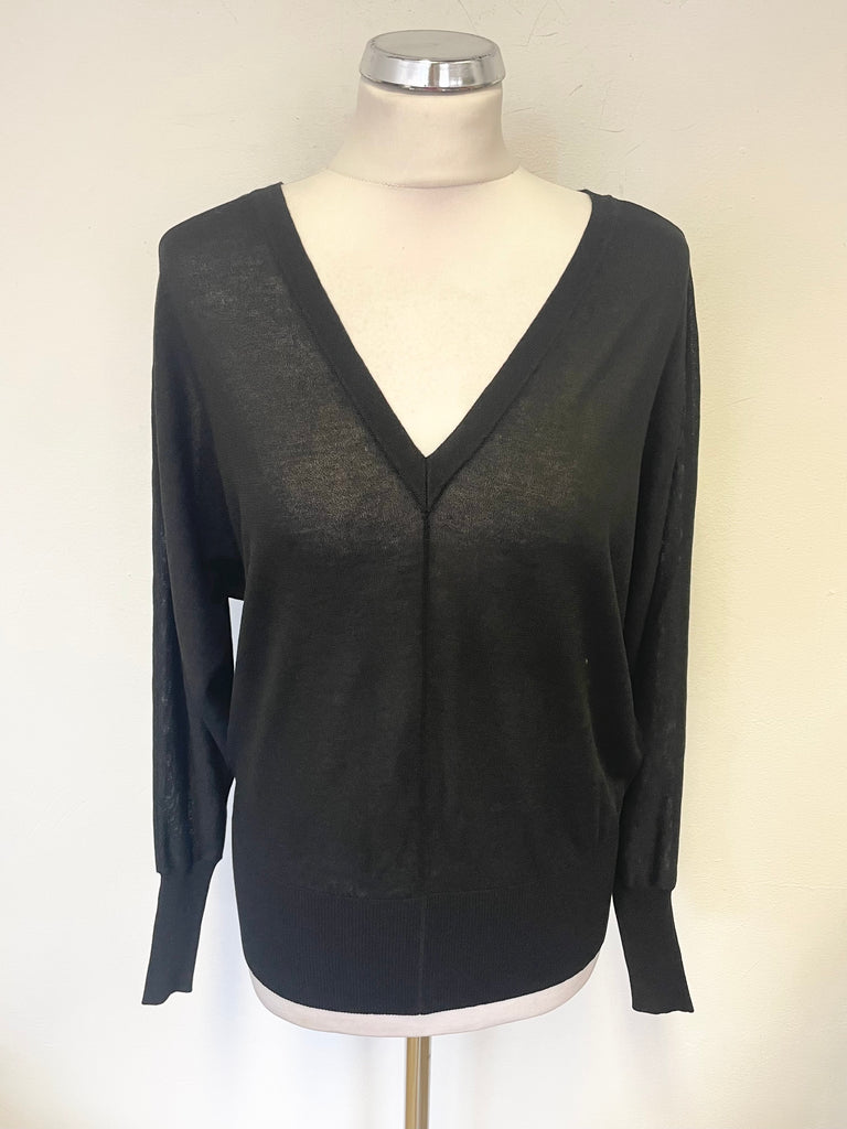 KAREN MILLEN BLACK V NECKLINE LONG DOLMAN SLEEVED JUMPER SIZE M