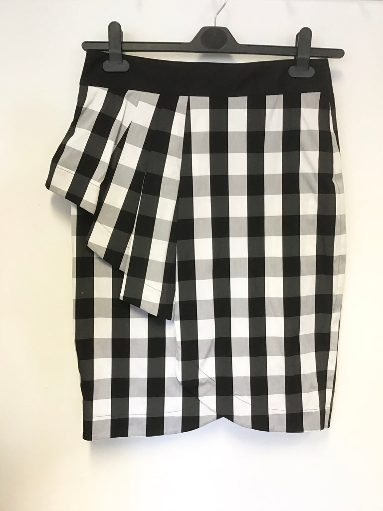 KAREN MILLEN BLACK & WHITE CHECK TIERED PLEAT PENCIL SKIRT SIZE 12