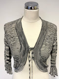 KAREN MILLEN BLACK & WHITE STRIPE BOLERO CARDIGAN SIZE 3 UK 12/14