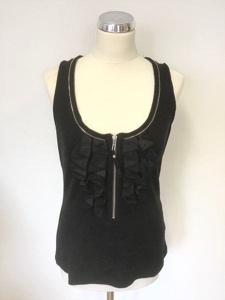 KAREN MILLEN BLACK ZIP & SILK PLEATED TRIM SLEEVELESS VEST TOP SIZE 14