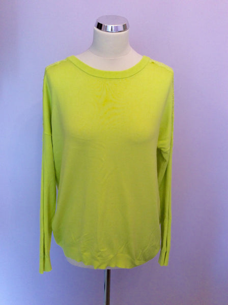 Karen Millen Bright Lime Green Lace Trim Jumper Size 3 UK 12/14