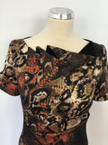 KAREN MILLEN BROWN,IVORY & ORANGE SNAKESKIN PRINT DRESS SIZE 12