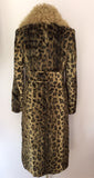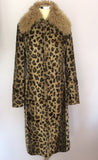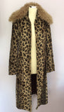 Karen Millen Brown Shaggy Lambswool Collar Leopard Print Coat Size 12