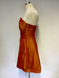 KAREN MILLEN BURNT ORANGE TAFFETA STRAPLESS DRESS SIZE 10