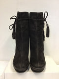 KAREN MILLEN DARK BROWN SUEDE TASSEL TRIM CALF LENGTH BOOTS SIZE 5/38